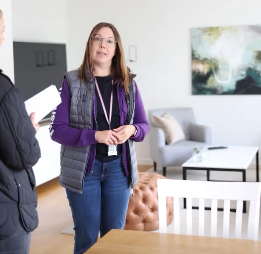 En stor del av Annas arbete handlar om att möta människor. Hon håller i lägenhetsvisningar och får då möjlighet att presentera både hemmet och Rikshem som hyresvärd. ”Det är också ett första tillfälle att börja bygga en relation med våra framtida hyresgäster”, berättar hon.